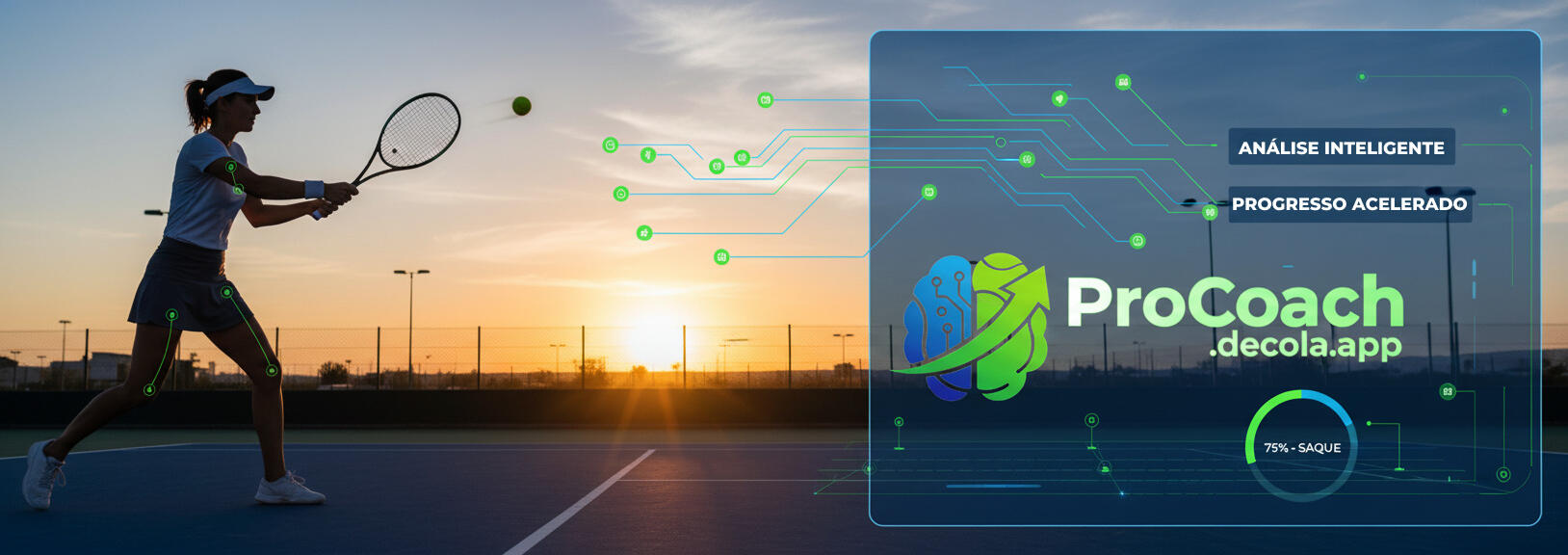 O ProCoach é o primeiro treinador digital voltado exclusivamente para esportes de raquete — com IA que transforma seus treinos em resultados visíveis.