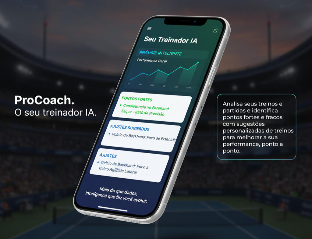 No cérebro do ProCoach está uma inteligência artificial que aprende com você. Ela analisa seus dados de treino, identifica padrões e entrega insights personalizados sobre seus pontos fortes e oportunidades de melhoria. Mais do que um aplicativo, o ProCoach é um treinador digital que combina tecnologia, análise e estratégia para transformar dados em performance real, ajudando você a jogar com propósito, treinar com foco e evoluir ponto a ponto nos esportes de raquete.Em breve, lançaremos a versão Beta exclusiva, e você pode ser um dos primeiros a testar essa revolução no treinamento esportivo.